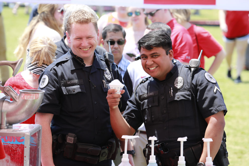 Staff members showed their athleticism at field-goal kicking and pitching stations. Some even displayed their rodeo skills with the ever-popular mechanical bulldog. Live music by Back in Time and Tropical Breeze added to the ambiance, and Trump’s Catering served lunch. Attendees also had their chance at a multitude of raffle prizes donated from event sponsors, local vendors and on-campus departments.