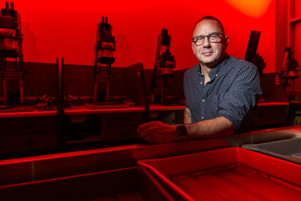 Clark’s art practice begins with photography, often using both his own images and vintage photographs as raw material. He layers, manipulates and recontextualizes them into larger mixed-media works that explore memory, material and transformation. This category of photography, known as alternative process, is experimental, time and labor intensive, and relies on wet chemical techniques, echoing the methods of a laboratory.
