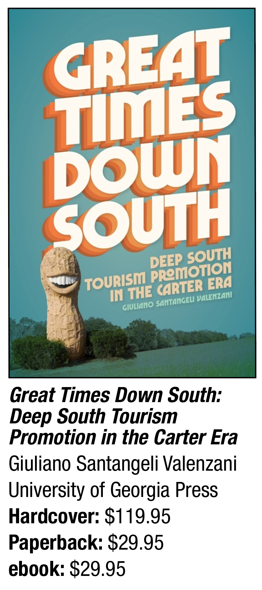 In “Great Times Down South,” historian Giuliano Santangeli Valenzani examines advertising materials such as brochures, booklets, advertisements, and radio and TV spots used by tourism bureaus in Alabama, Georgia, Mississippi and South Carolina from 1976 to 1981. This period, known as the Carter era, marked “southern fashion” and economic prosperity in the Sunbelt.