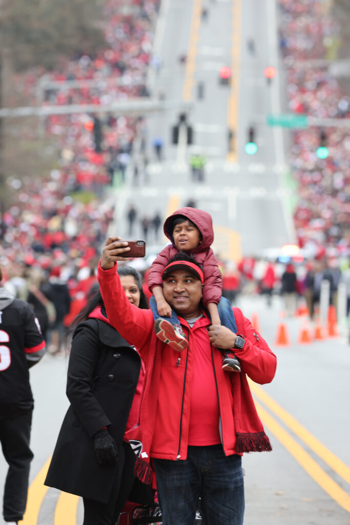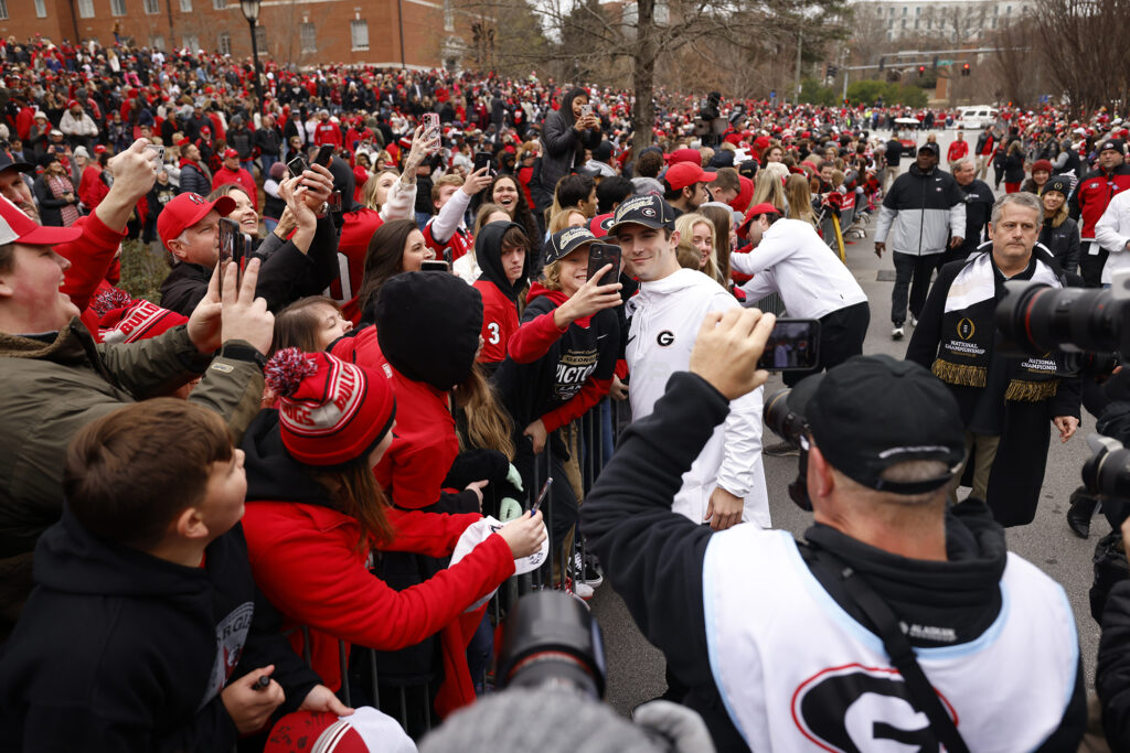 With thousands of fans lining the sidewalks in between Butts-Mehre Heritage Hall, at the corner of Pinecrest Drive and Lumpkin, and the turnoff for the Tate Center parking lot, and then continuing on to the Dawg Walk by the stadium, these Bulldogs over the nearly mile-long route received a hero’s welcome.