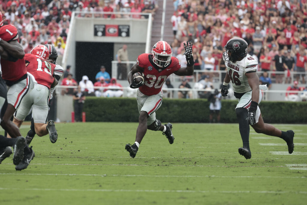 The Bulldogs (3-0, 1-0 SEC) got three rushing touchdowns in the second half, and its defense ramped up its pressure on quarterback Spencer Rattler to shift the momentum of the game, played in front of another capacity crowd of 92,746.