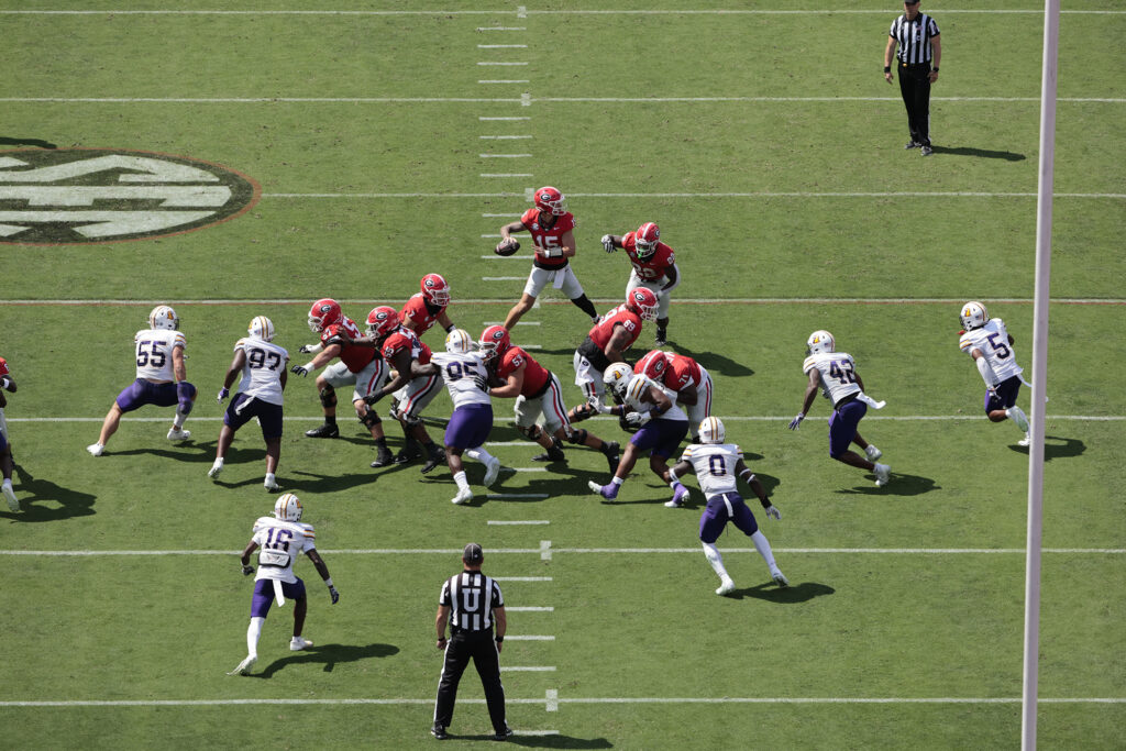 While the Georgia (2-0) offense piled up 498 yards, averaging 8.2 yards per play, the Bulldog defense held the Golden Eagles (0-2) to 134 yards of total offense and just 2.8 yards per play. Tech’s only points came on a 32-yard field goal on the game’s final play.