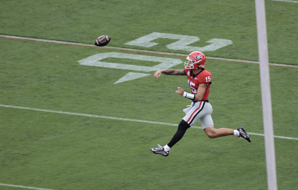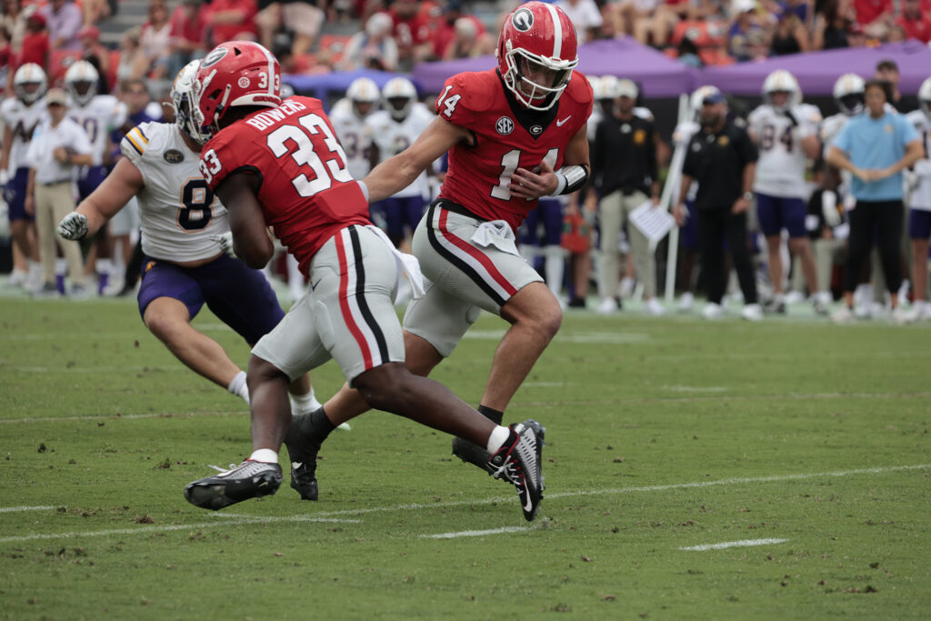 Led by five touchdown passes from quarterback Carson Beck, the top-ranked Georgia football team earned its 26th consecutive win at Sanford Stadium on Saturday, routing Tennessee Tech 48-3 in the Bulldogs’ home opener. The victory, in front of a crowd of 93,033, was also the Bulldogs’ 41st straight regular-season win.