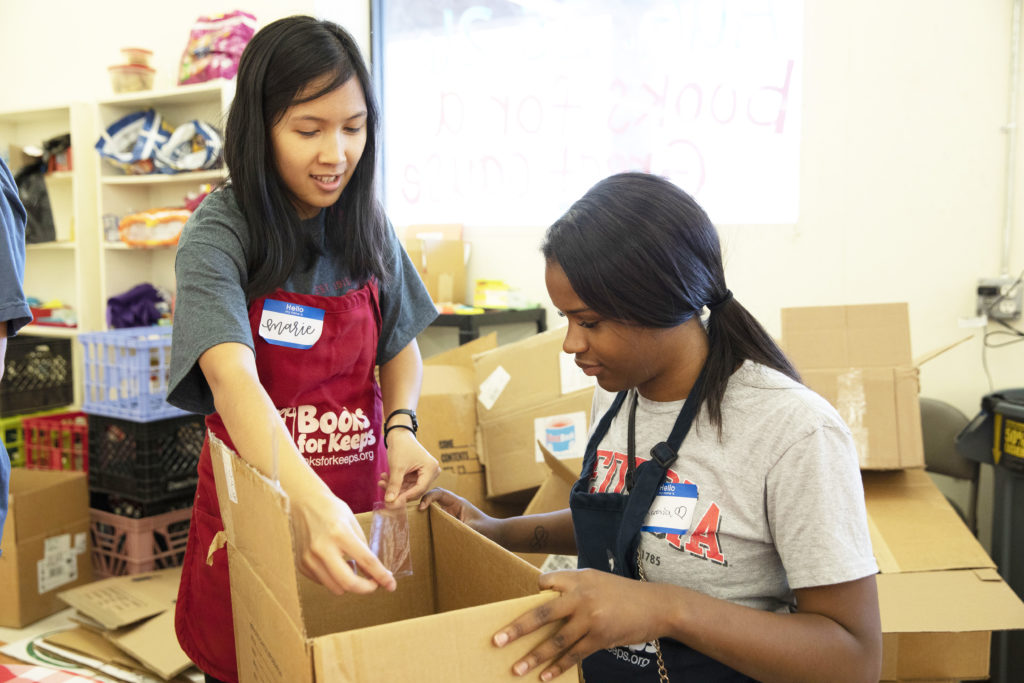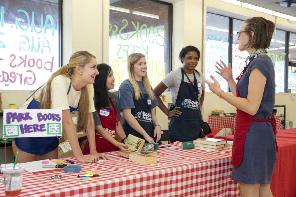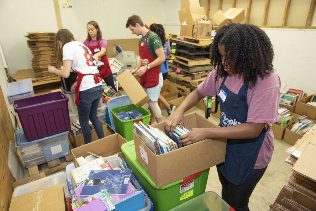 One of those service sites was Books for Keeps, an organization that has donated 450,000 books to children in kindergarten through 12th grade since 2009. A group of students helped with the Books for Keeps book sale by organizing books and helping customers.