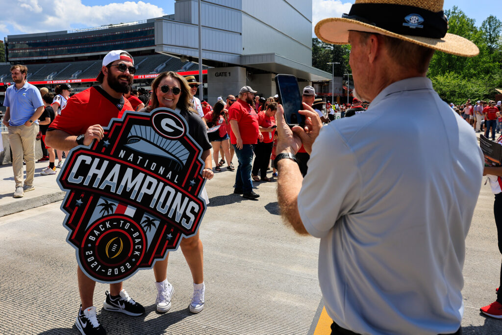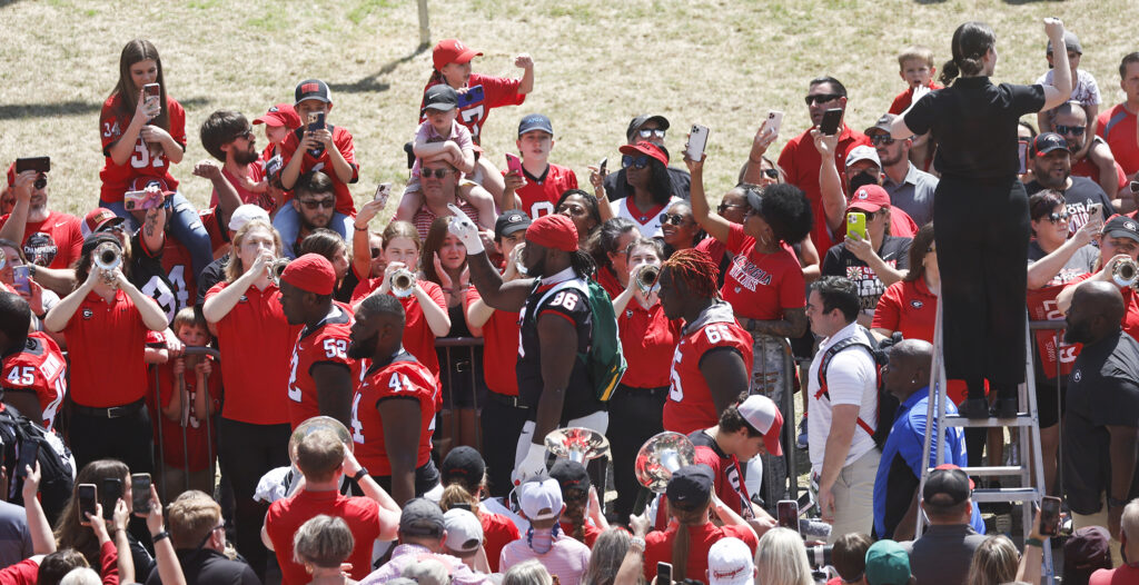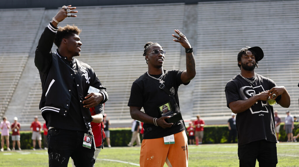 Georgia, winners of back-to-back College Football Playoff national championships, had about a dozen of last season’s standouts back on Dooley Field during the game, including quarterback Stetson Bennett, linebacker Nolan Smith and wideout Kearis Jackson. During a first-half timeout, they were recognized in front of the spirited crowd of 54,458 and got the chance to show off their new national championship rings.