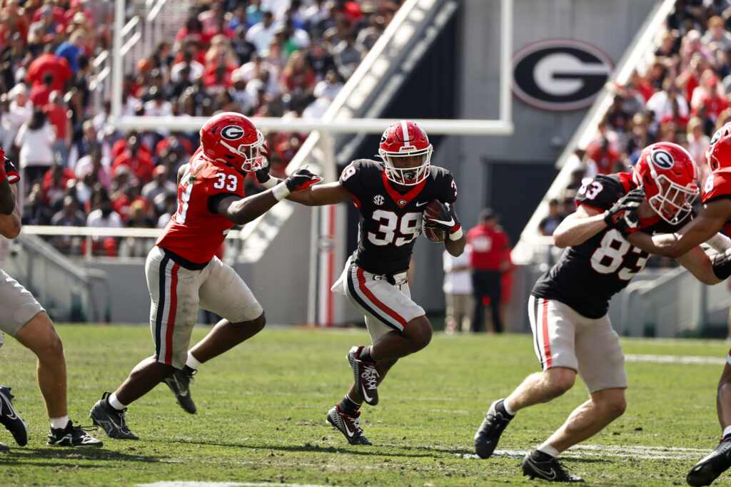 Arian Smith scored twice, Carson Beck had a big opening half throwing the ball, and the Red squad knocked off the Black, 31-26, in the G-Day Game on Saturday afternoon at Sanford Stadium.