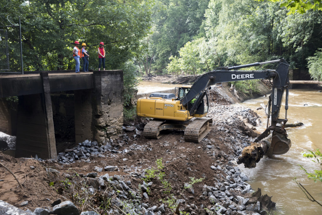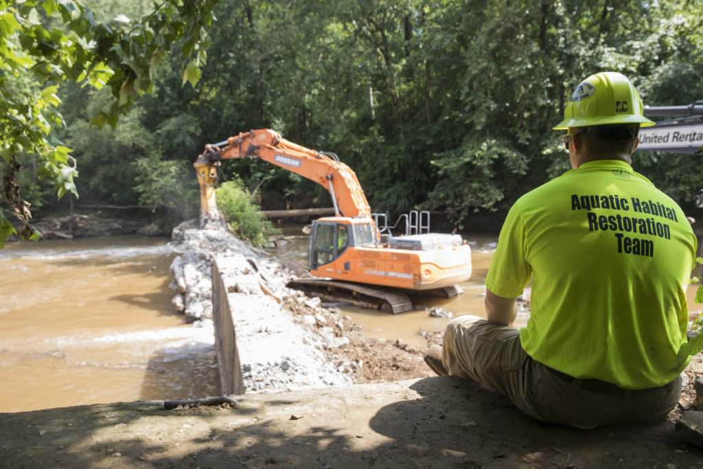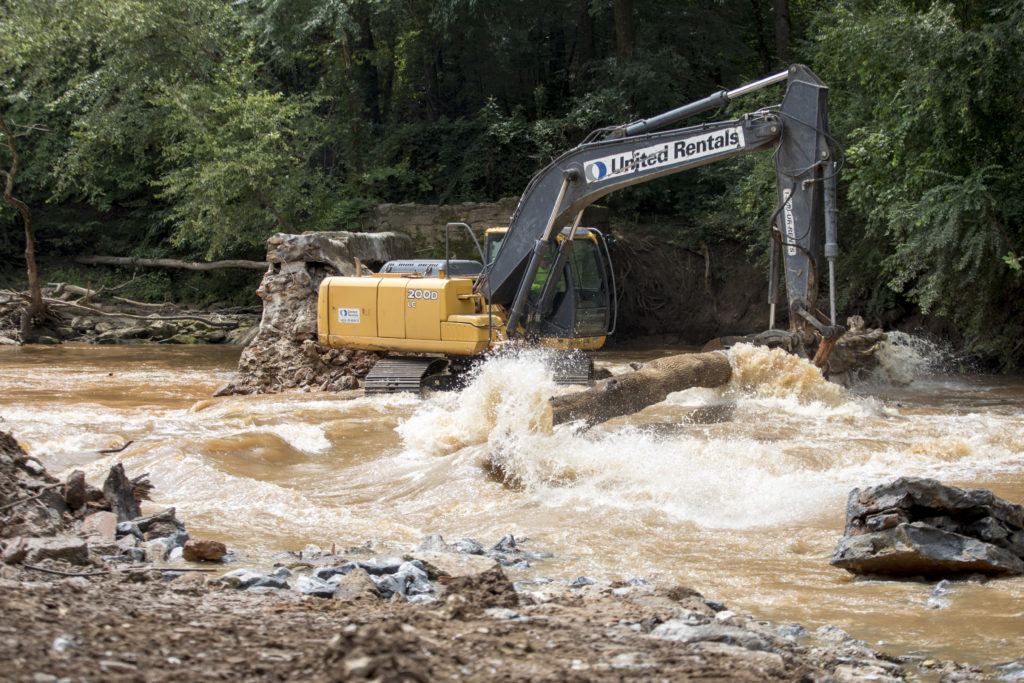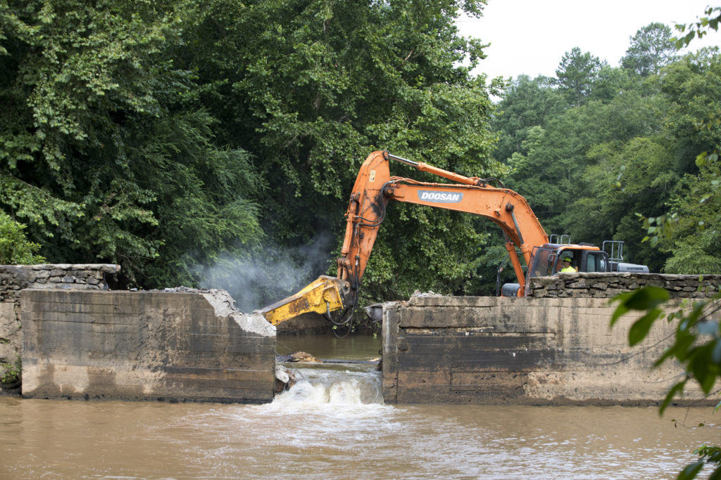 Under the direction of UGA faculty experts and partners from multiple agencies, workers began modifying portions of UGA-owned White Dam, a stone and masonry structure that spans the Middle Oconee River upstream from its confluence with the North Oconee River. The most significant part of the modification began on Monday, July 16, and will continue until the project is completed. Here are photos from Dorothy Kozlowski of UGA Marketing and Communications, who has been documenting the work. Check back for more.