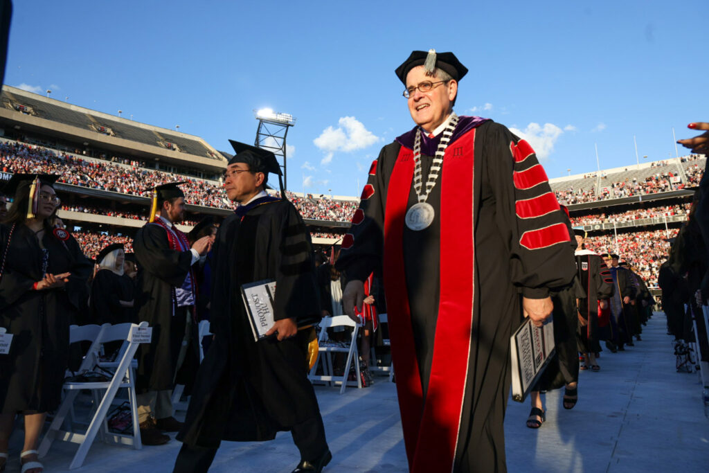“Many of you sitting on the field tonight graduated from high school in the spring of 2020, when the entire world was first grappling with the COVID-19 pandemic. Many of you had a drive-through graduation ceremony or a ceremony conducted on Zoom as you and your family sat together on your sofa in your home,” Morehead said. “Those experiences make tonight’s undergraduate Commencement at the University of Georgia even more special. I hope that you feel a spectacular sense of achievement as we celebrate all that you have overcome in the past four years and all that awaits you in the bright future ahead.”
