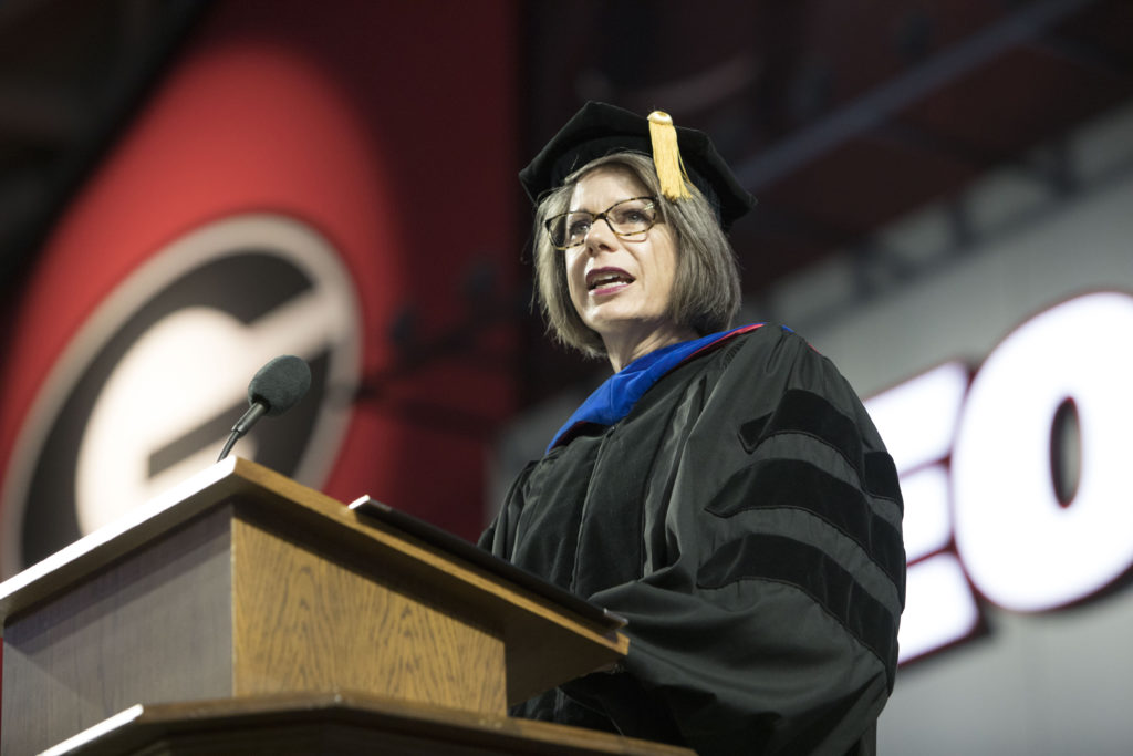 Earlier in the day at the graduate ceremony in Stegeman Coliseum, Denise Spangler, the new dean of UGA’s College of Education, also spoke about the importance of education.