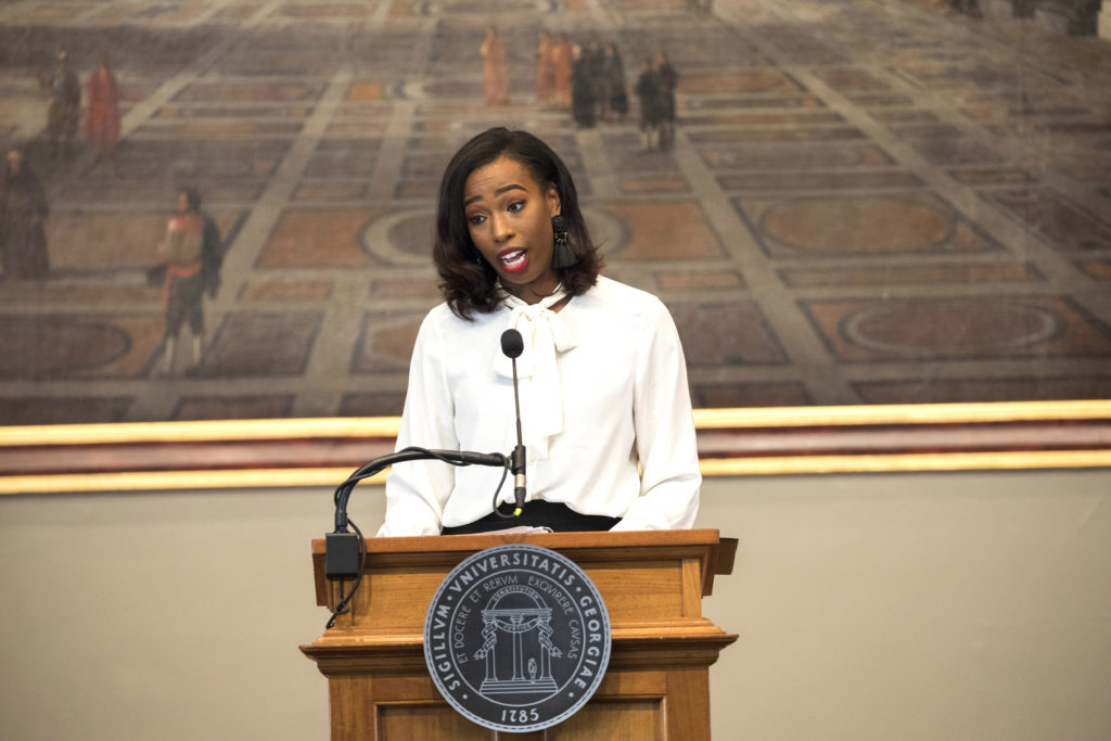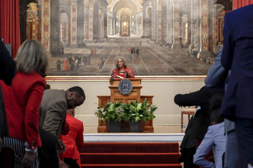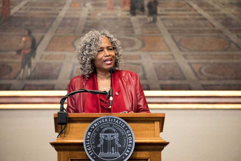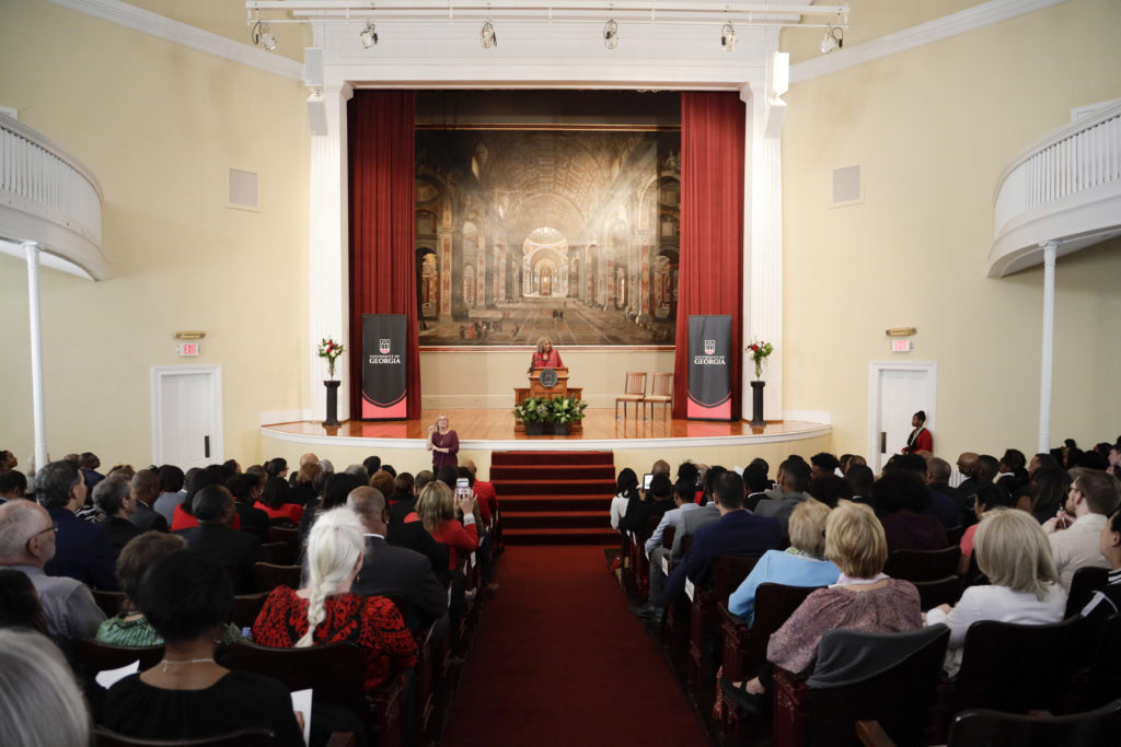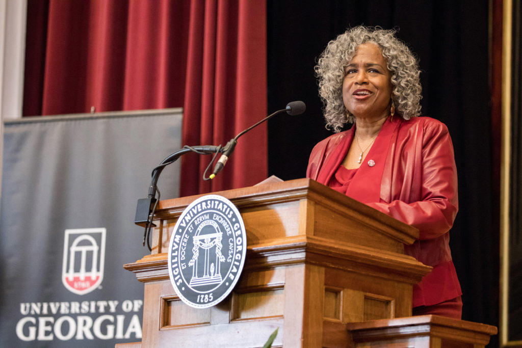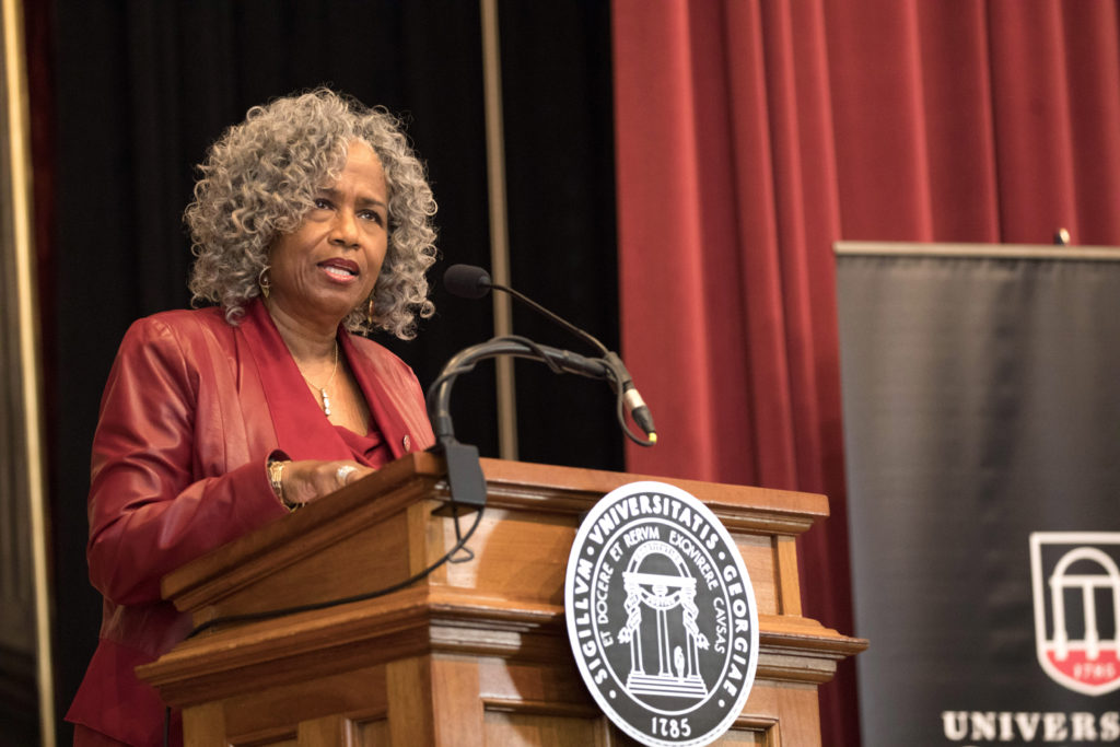 The lecture, named in honor of Charlayne Hunter-Gault and Hamilton Holmes, the first African American students to attend the University of Georgia, also was designated a Signature Lecture. It is sponsored by the Office of the President and focuses on race relations, civil rights and education. It has been held annually since 1985. Holmes’ widow, Marilyn, and his children were in attendance, as was Mary Frances Early, the first African American to graduate from UGA.