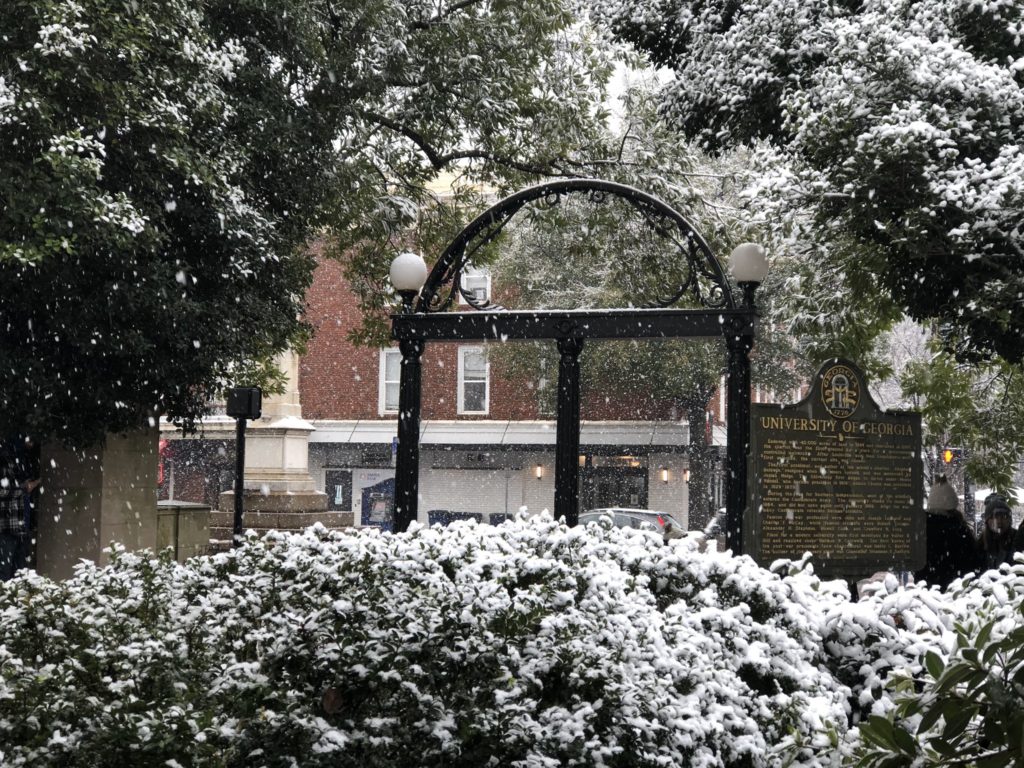 A touch of winter fell on Athens and the UGA campus Saturday morning. Here are some photographs originally posted on social media from our Bulldog family across campus.