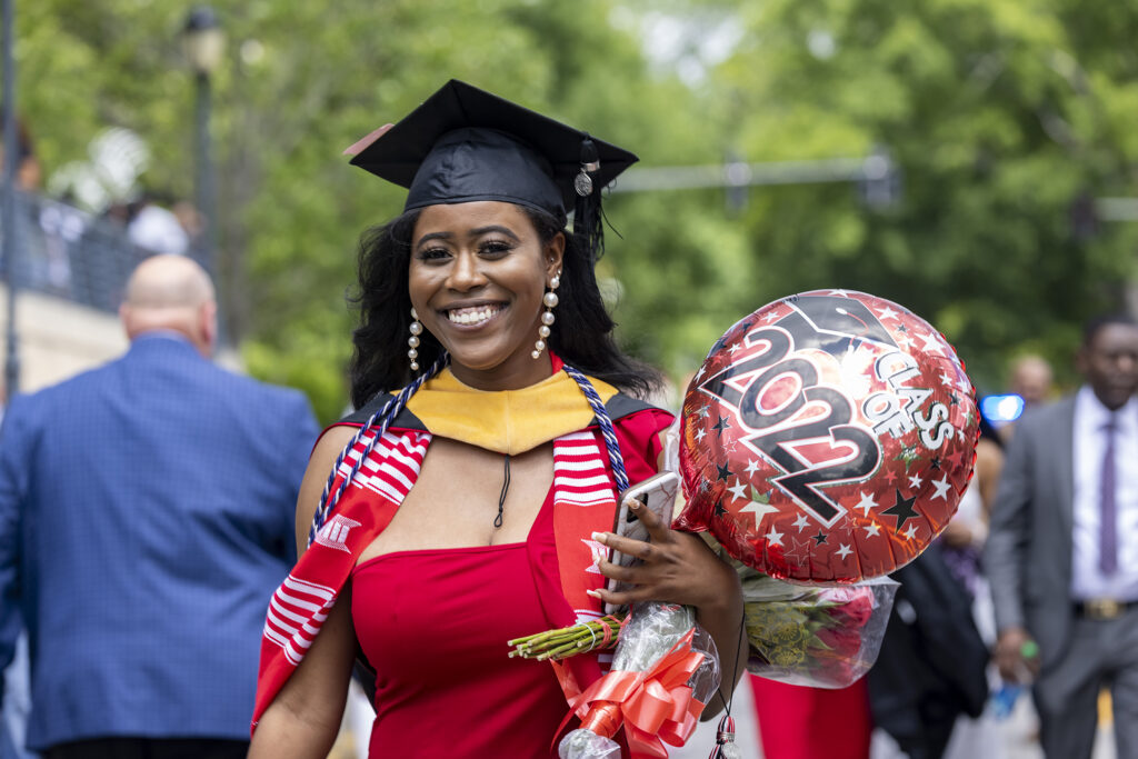 At the graduate Commencement ceremony held earlier in the day, Jennifer Frum, vice president for public service and outreach, shared some of the lessons she learned during the pandemic and encouraged graduates to embrace what makes them uncomfortable.
