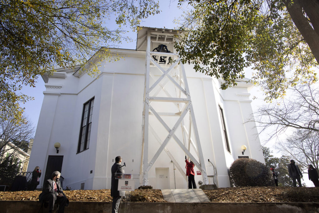 The day began with remarks by UGA President Jere W. Morehead and others before a ceremonial ringing of the Chapel Bell by African American UGA alumni from each decade since the university’s desegregation.